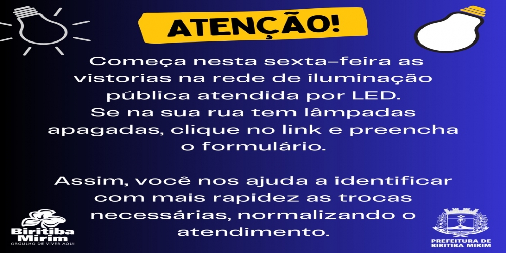 ATENÇÃO! TROCA DE LÂMPADAS E ILUMINAÇÃO PÚBLICA EM LED!