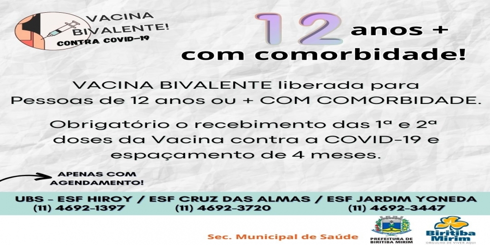 VACINA BIVALENTE CONTRA A COVID-19 PARA 12 ANOS + COM COMORBIDADES