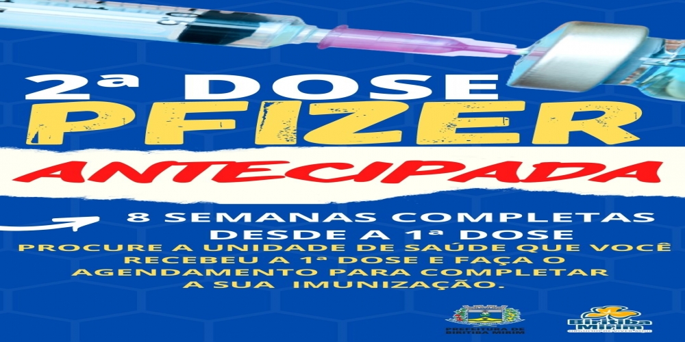 SEGUNDA DOSE DA VACINA CONTRA COVID-19 TEM CALENDÁRIO ANTECIPADO DE 12 PARA 8 SEMANAS PARA QUEM RECEBEU O IMUNIZANTE DA PFIZER.