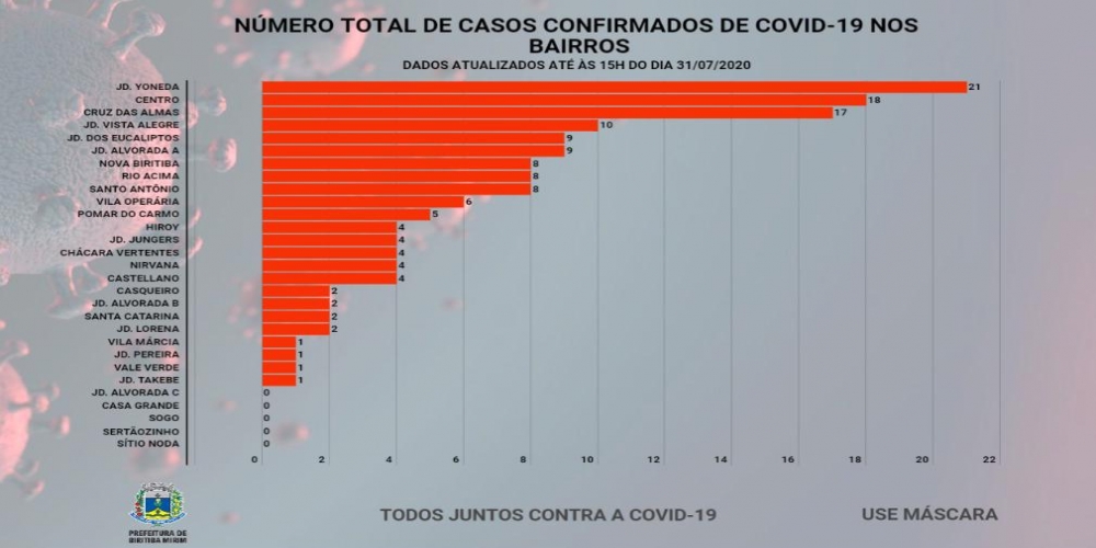 INFORMATIVO: Número total de casos confirmados de Covid-19 nos bairros