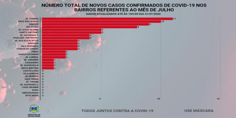 INFORMATIVO: Número total de novos casos confirmados de Covid-19 nos bairros referentes ao mês de Julho