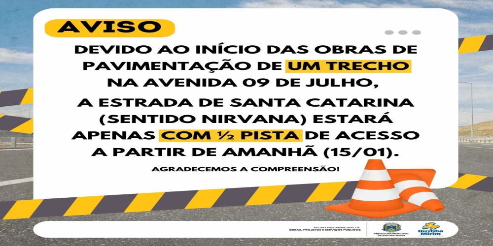 ATENÇÃO! SECRETARIA DE OBRAS INFORMA: