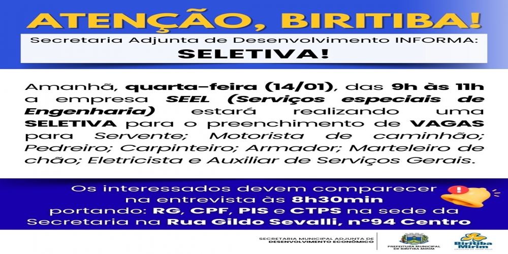 SECRETARIA ADJUNTA DE DESENVOLVIMENTO INFORMA: SELETIVA!