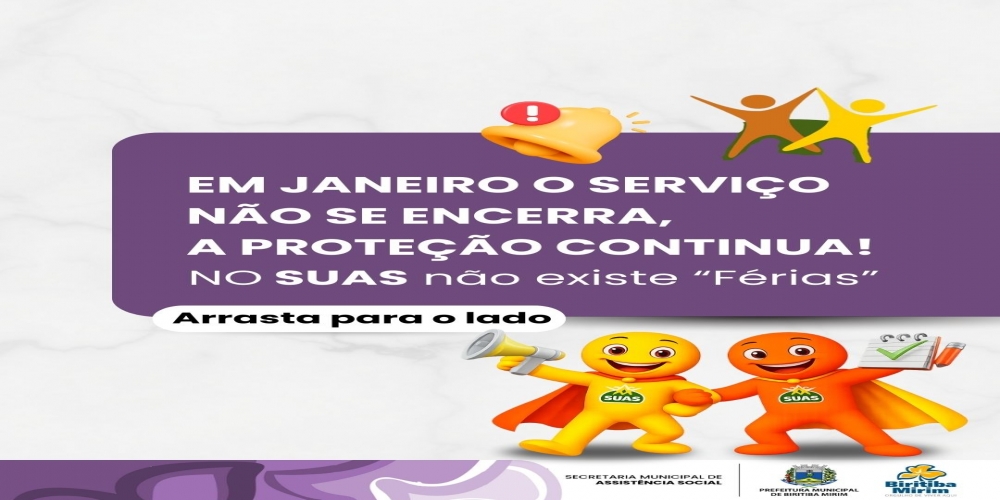 VOCÊ SABIA QUE NO MÊS DE JANEIRO OS SERVIÇOS OFERECIDOS PELA ASSISTÊNCIA SOCIAL NÃO SAI DE “FÉRIAS”?