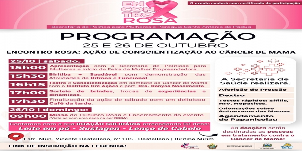 ENCONTRO ROSA: SAÚDE, CONSCIENTIZAÇÃO E SOLIDARIEDADE