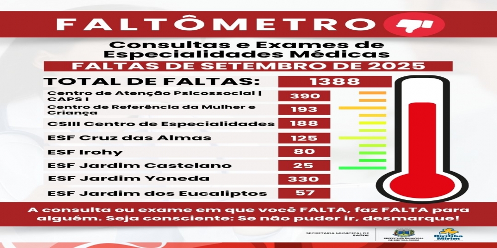 SECRETARIA MUNICIPAL DE SAÚDE FAZ ALERTA SOBRE O NÚMERO DE FALTOSOS NOS ATENDIMENTOS MÉDICOS