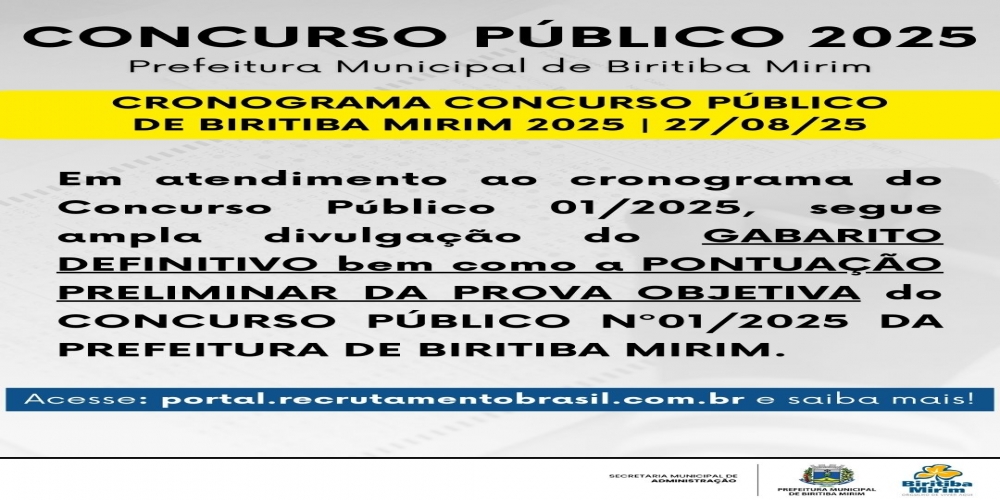 CRONOGRAMA CONCURSO PÚBLICO DE BIRITIBA MIRIM 2025 | 27/08/25