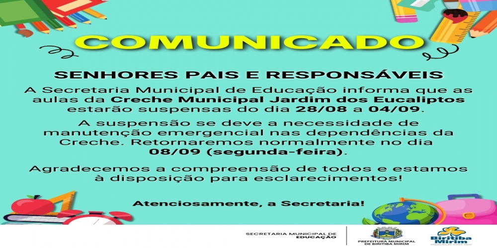COMUNICADO IMPORTANTE! SENHORES PAIS E RESPONSÁVEIS