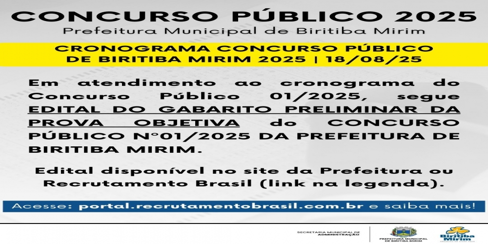 CRONOGRAMA CONCURSO PÚBLICO DE BIRITIBA MIRIM 2025 | 18/08/25
