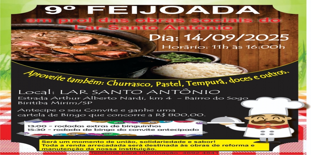9ª FEIJOADA EM PROL DAS OBRAS SOCIAIS DO LAR SANTO ANTÔNIO