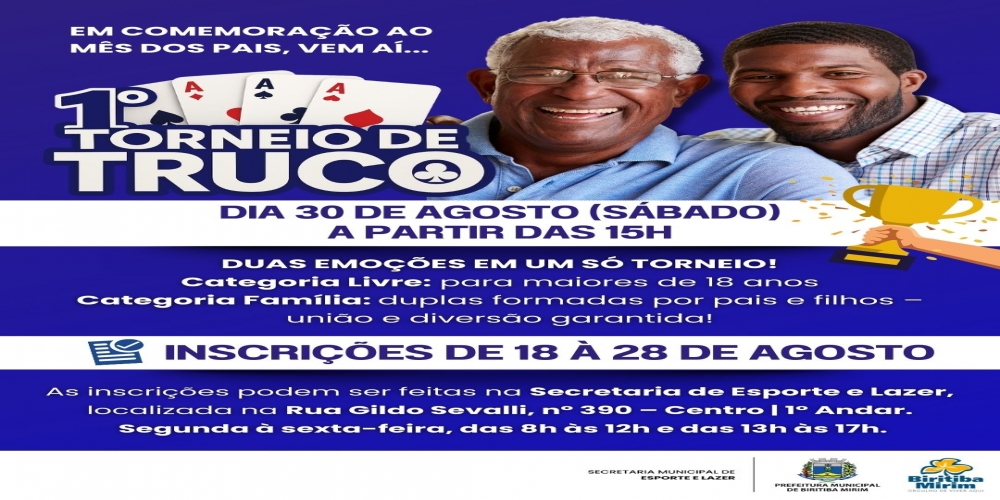EM COMEMORAÇÃO AO MÊS DOS PAIS, VEM AÍ... 1º TORNEIO DE TRUCO DE BIRITIBA MIRIM