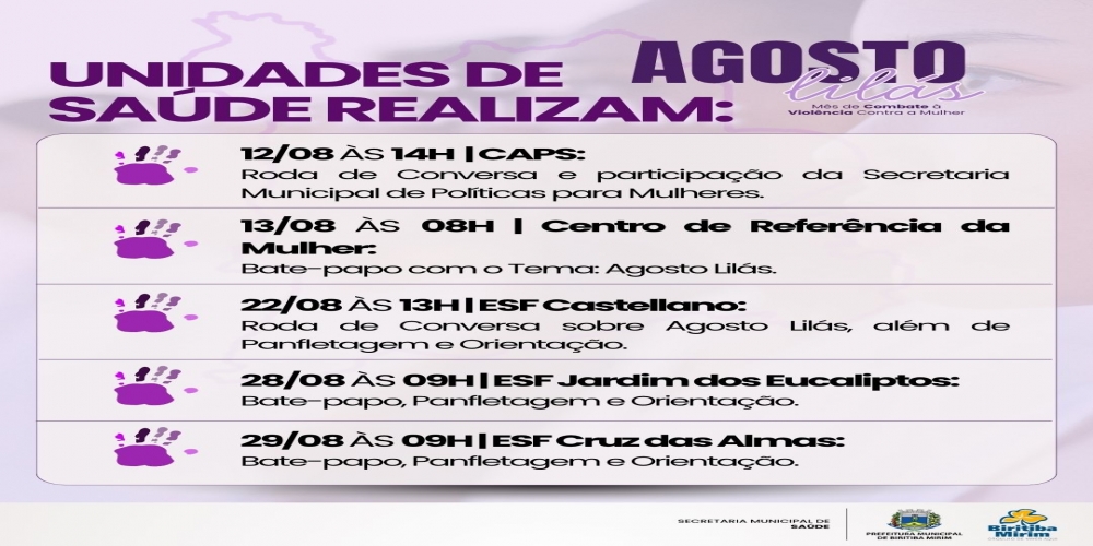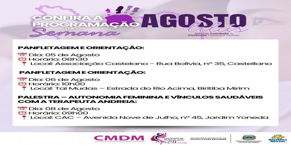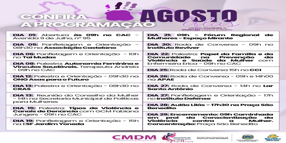 AGOSTO LILÁS 2025 – CONFIRA A PROGRAMAÇÃO DISPONÍVEL