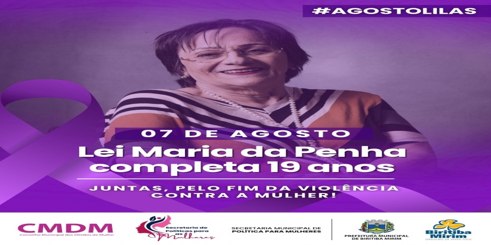 07 DE AGOSTO – 19 ANOS DA LEI MARIA DA PENHA