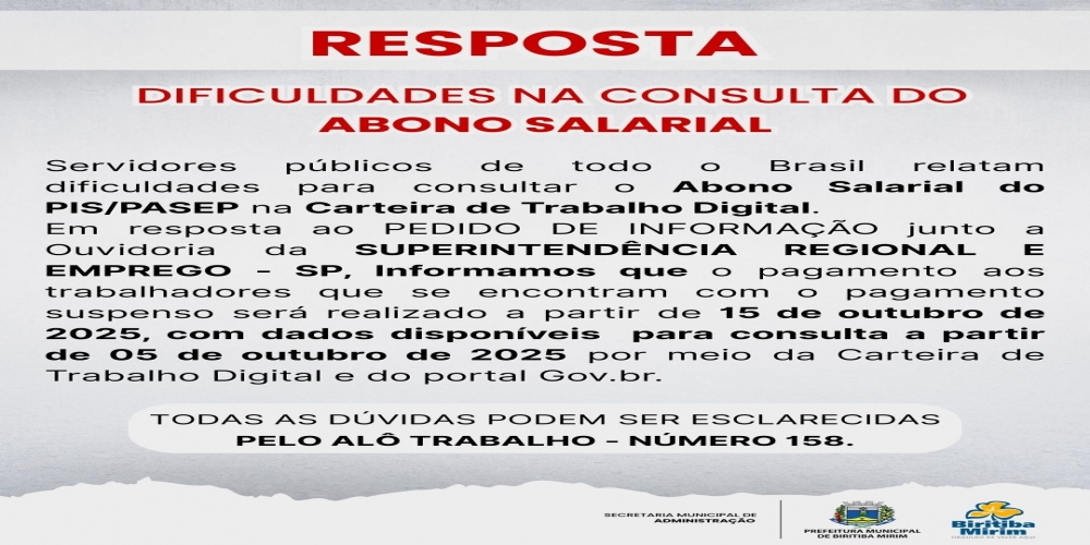 RESPOSTA – DIFICULDADES NA CONSULTA DO ABONO SALARIAL