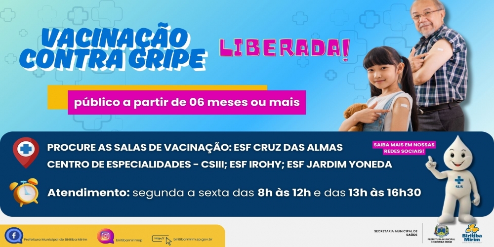 ATENÇÃO! VACINAÇÃO LIBERADA PARA TODOS A PARTIR DE 6 MESES DE IDADE!