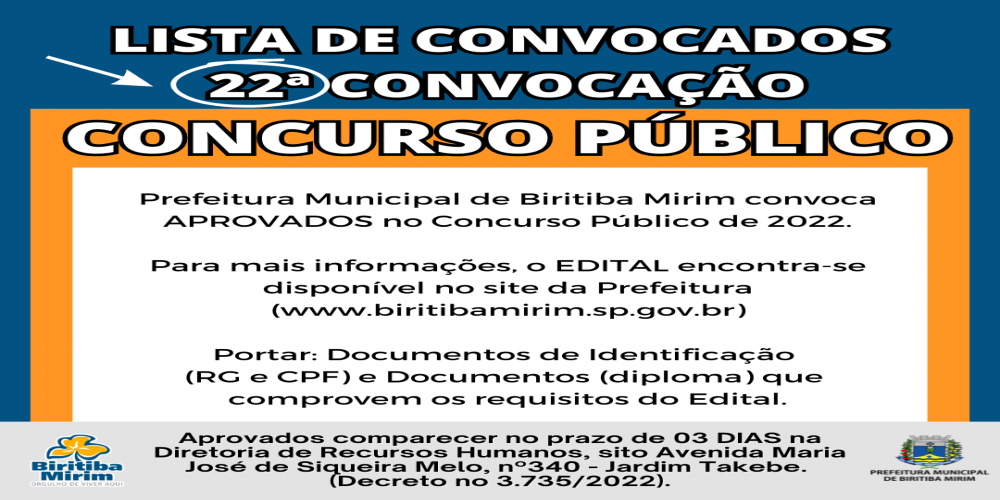 22ª CONVOCAÇÃO CONCURSO PÚBLICO!