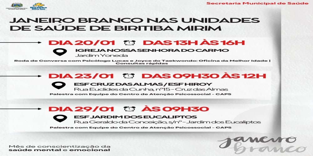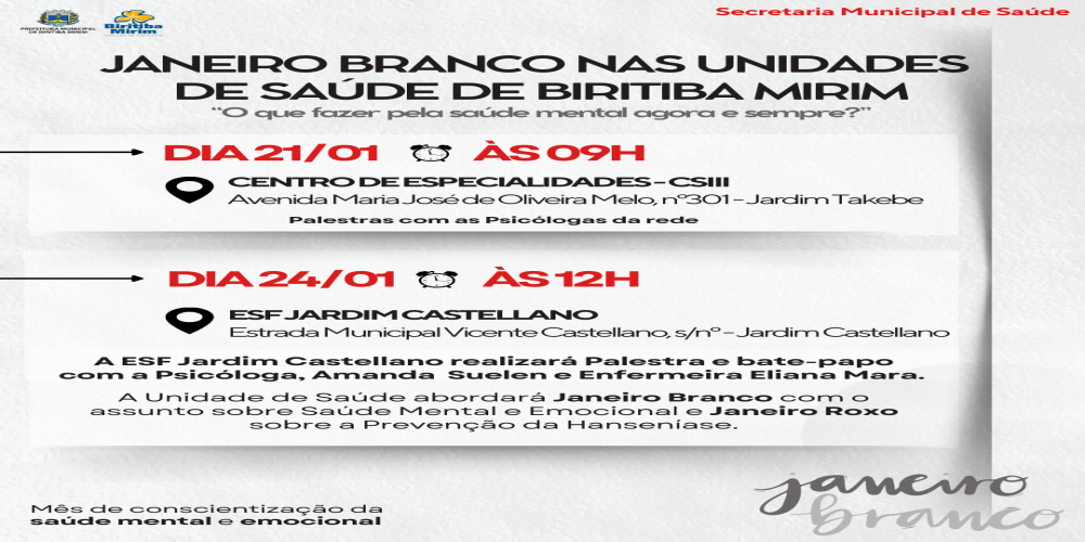SECRETARIA DE SAÚDE INFORMA: AÇÕES DE JANEIRO BRANCO NAS UNIDADES DE BIRITIBA MIRIM
