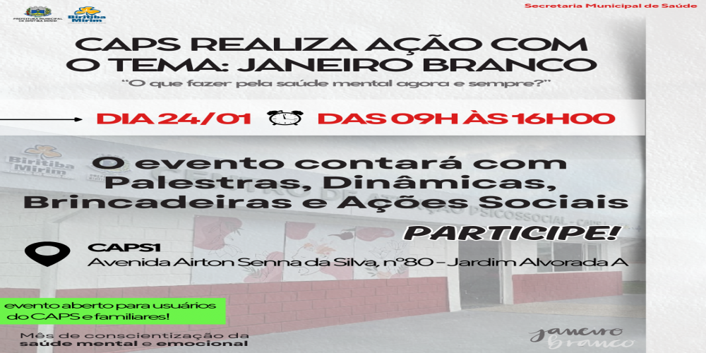 CAPS DE BIRITIBA MIRIM REALIZA AÇÃO DE JANEIRO BRANCO NO DIA 24 DE JANEIRO