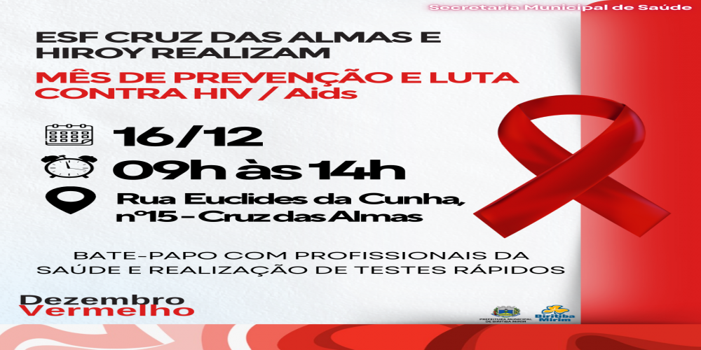 ESF CRUZ DAS ALMAS E HIROY REALIZAM AÇÃO DO DEZEMBRO VERMELHO NA PRÓXIMA SEGUNDA-FEIRA (16)