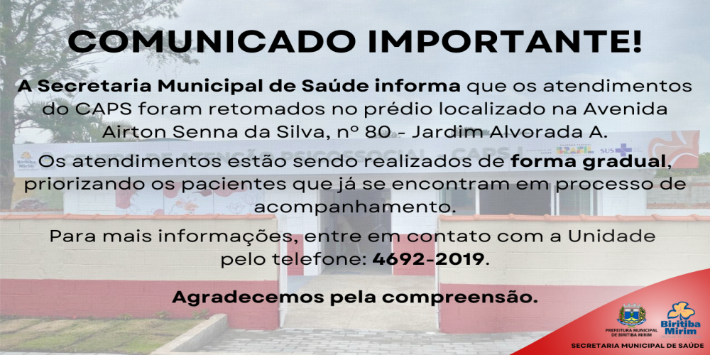 SECRETARIA DE SAÚDE INFORMA: CAPS