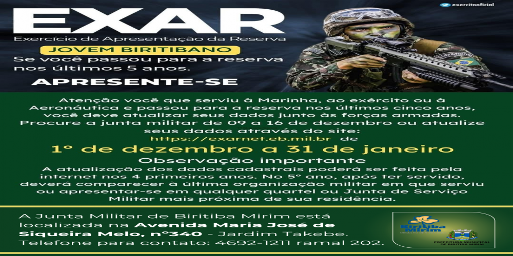 ATENÇÃO! JUNTA MILITAR INFORMA: