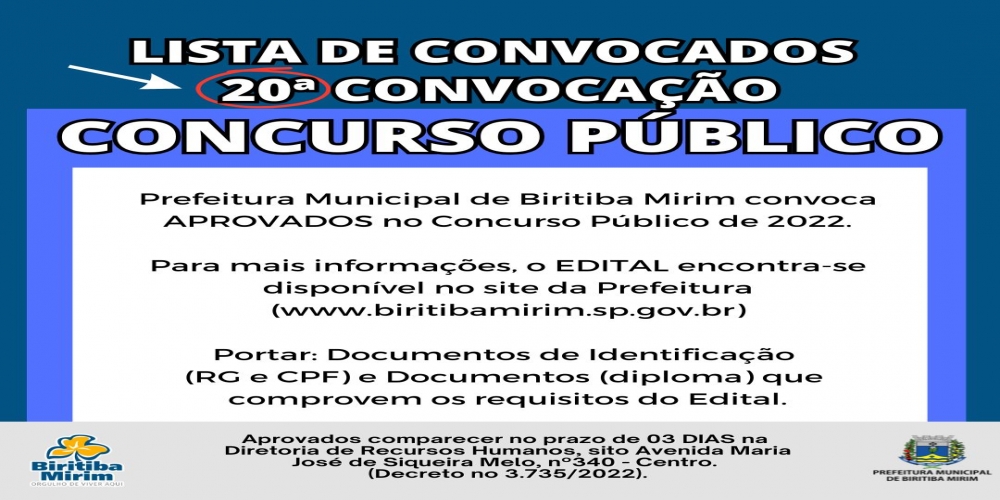 20ª CONVOCAÇÃO CONCURSO PÚBLICO