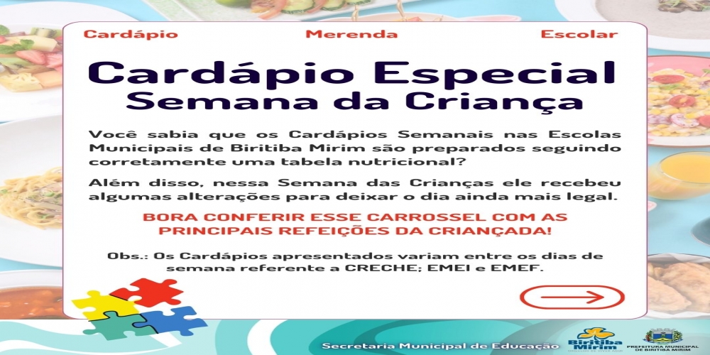 CARDÁPIO ESPECIAL SEMANA DA CRIANÇA