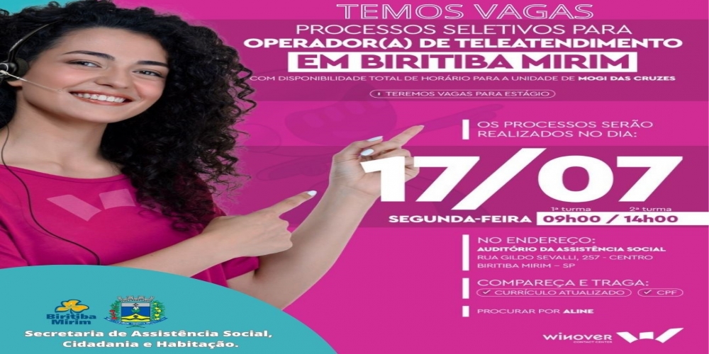 PROCESSO SELETIVO PARA OPERADOR (A) DE TELEATENDIMENTO SERÁ DIA 17 DE JULHO