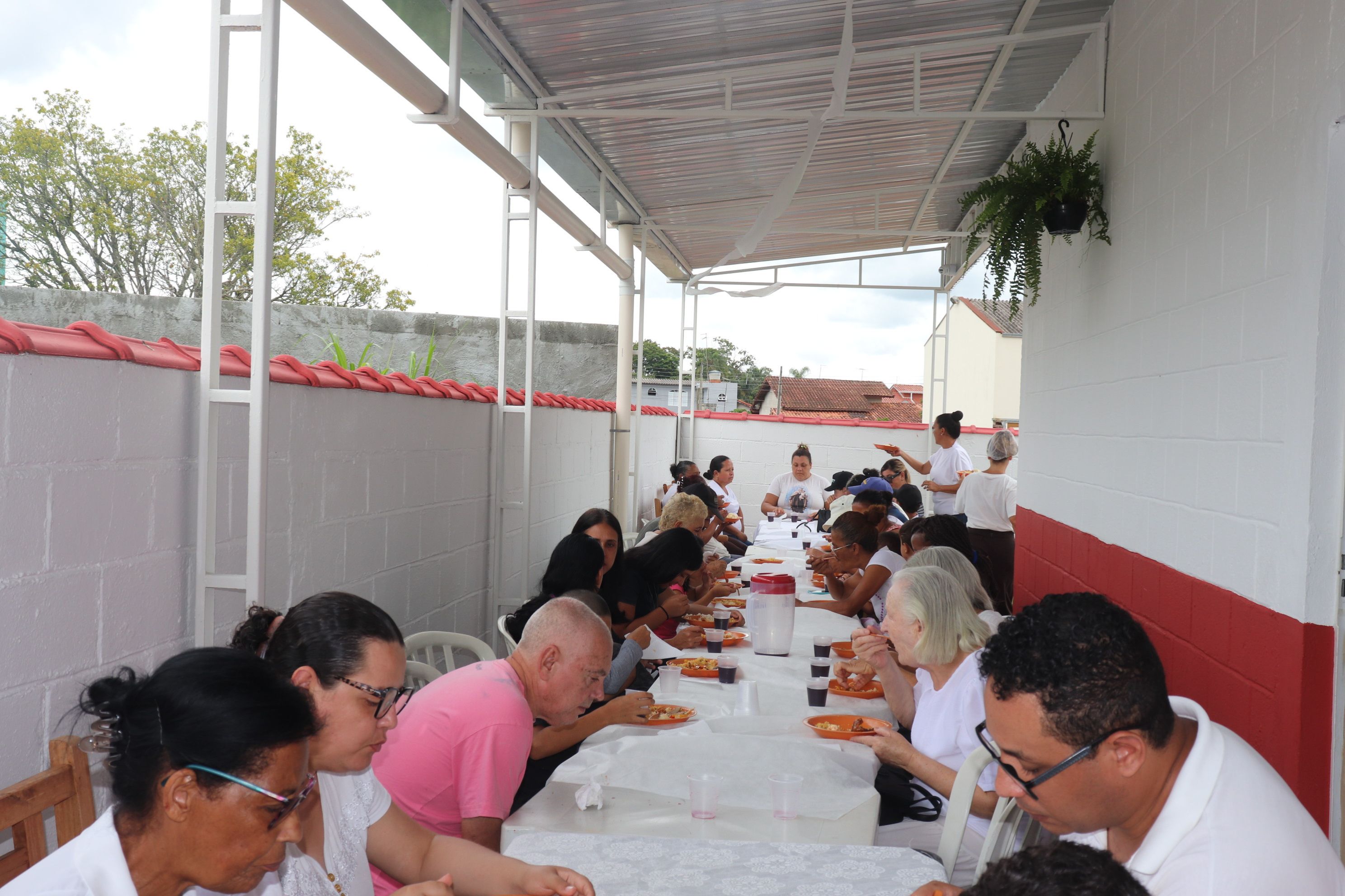 Após as atividades, foi servido um almoço especial com arroz colorido, pernil, farofa temperada e como sobremesa, pudim de leite condensado e bolo. As oficinas e atividades continuaram durante a tarde, até as 15h.