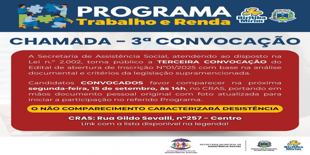 3ª CONVOCAÇÃO PROGRAMA TRABALHO E RENDA